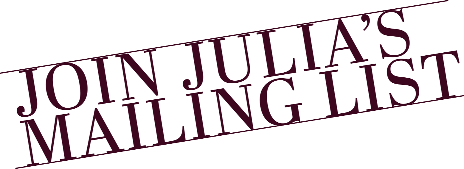 Join Julia’s Mailing List to find out about the amazing events and book talks she is doing around the globe and online.